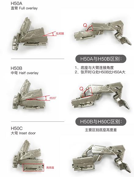 根據(jù)鉸鏈的蓋位不同,可以將鉸鏈分為大彎、中彎、直臂三種,但是即便是一些熟手的裝修師傅,也未必能分清哪一只鉸鏈?zhǔn)谴髲?、中彎和直臂,更不用說(shuō)特殊角度的鉸鏈了。