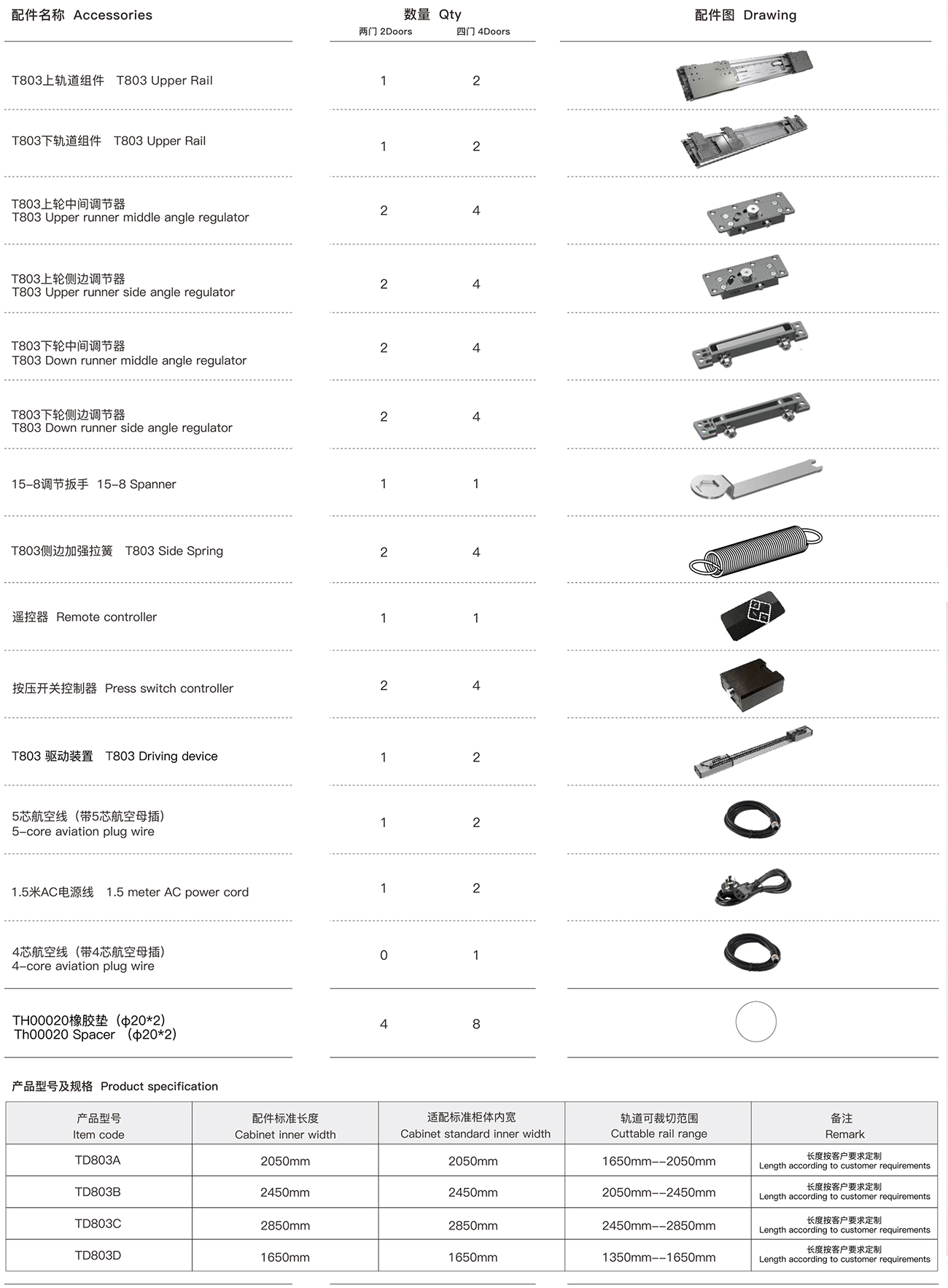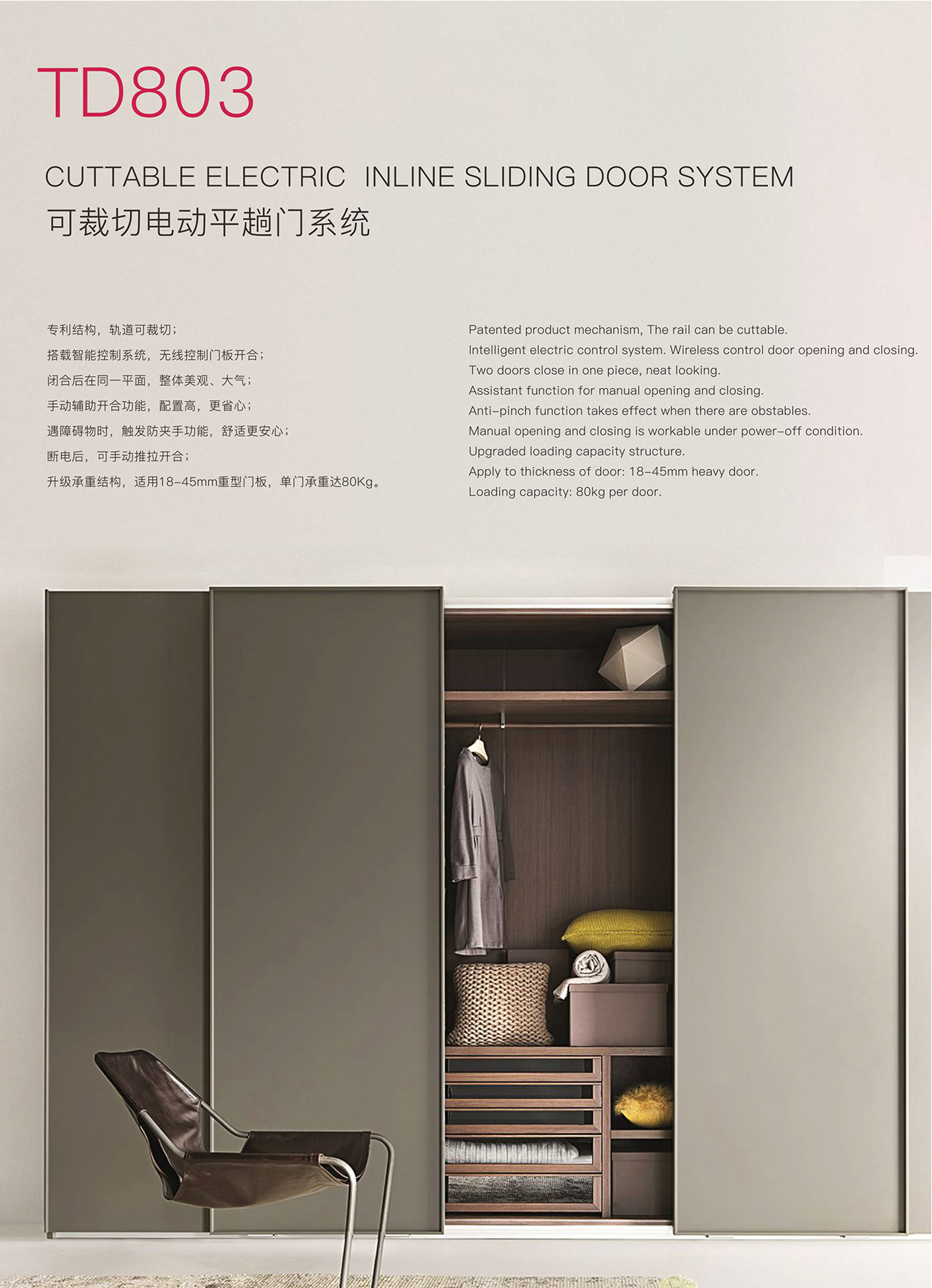 TD803 CUTTABLE ELECTRIC INLINE SLIDNG DOOR SYSTEM
