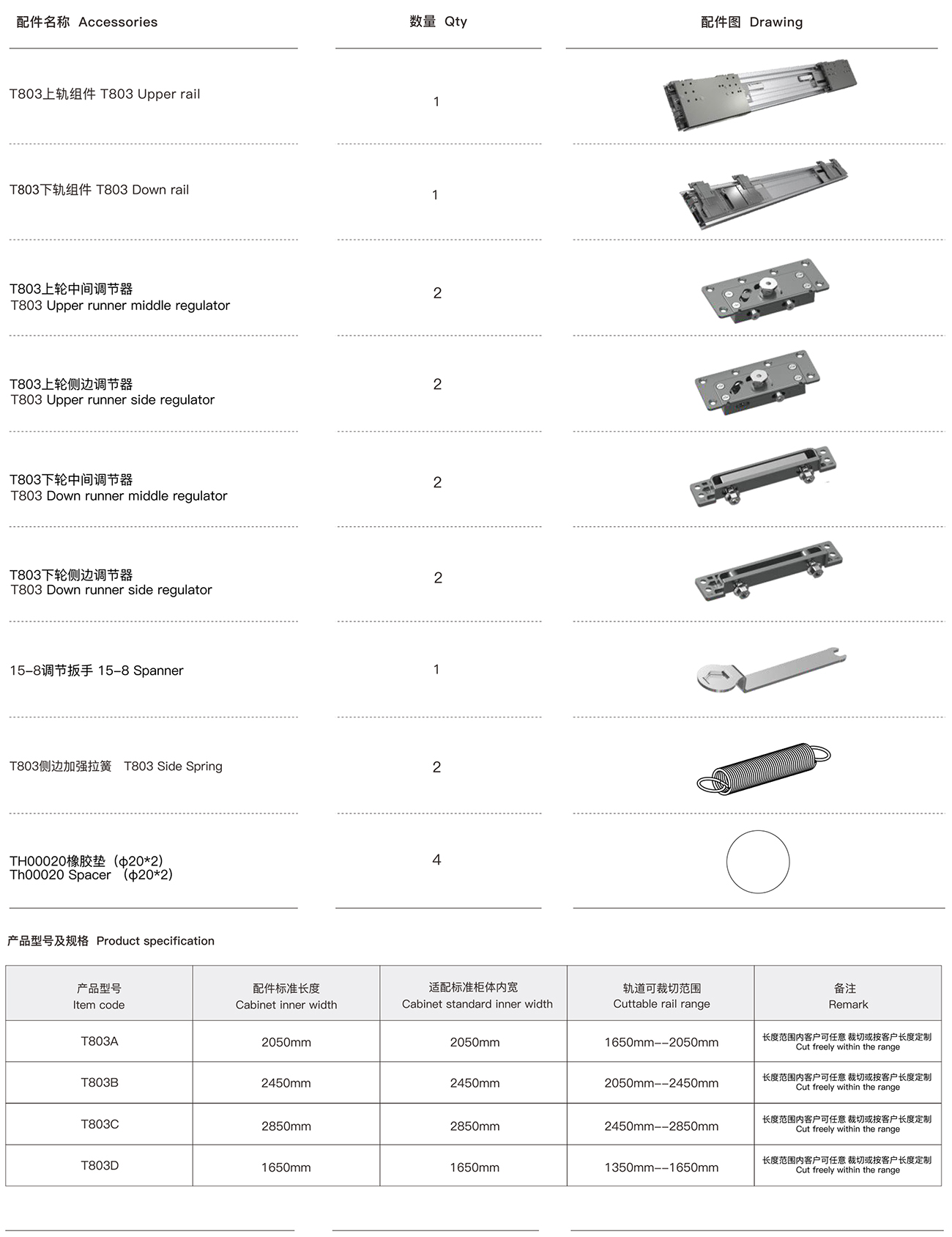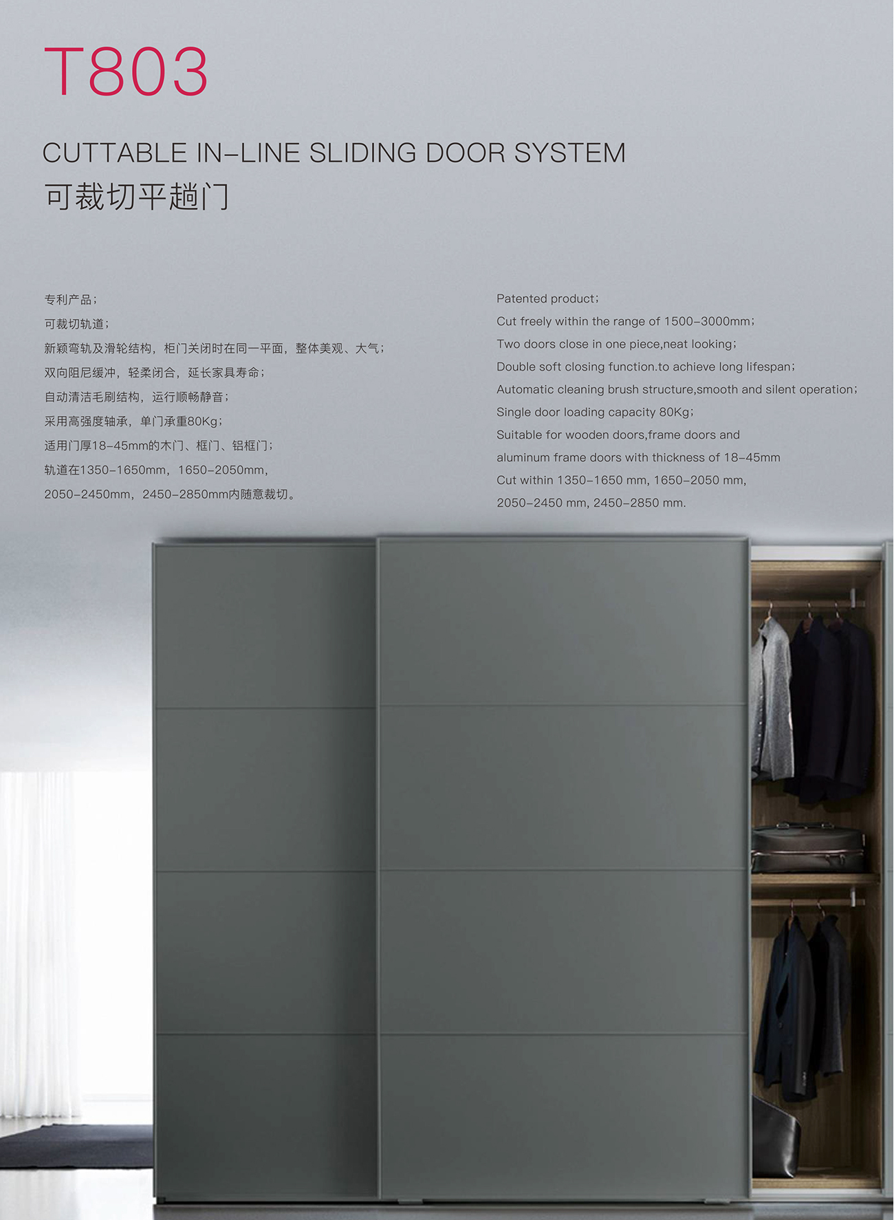 T803 CUTTABLE IN-LINE SLIDNG DOOR SYSTEM