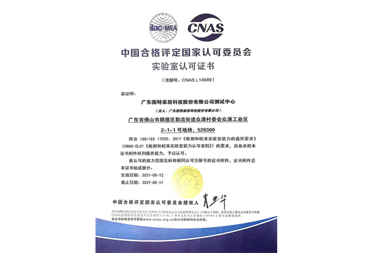 - 圖特五金檢測中心榮獲“中國合格評定國家認可委員會”CNAS認證的實驗室認可證書