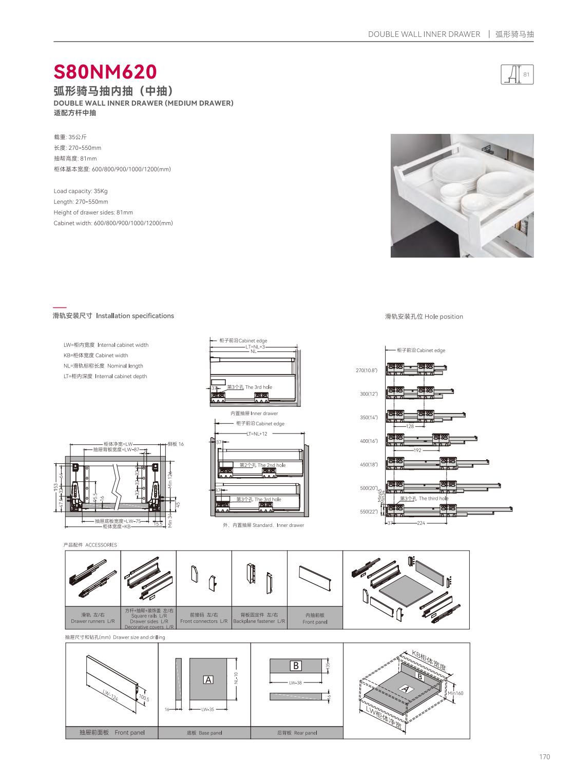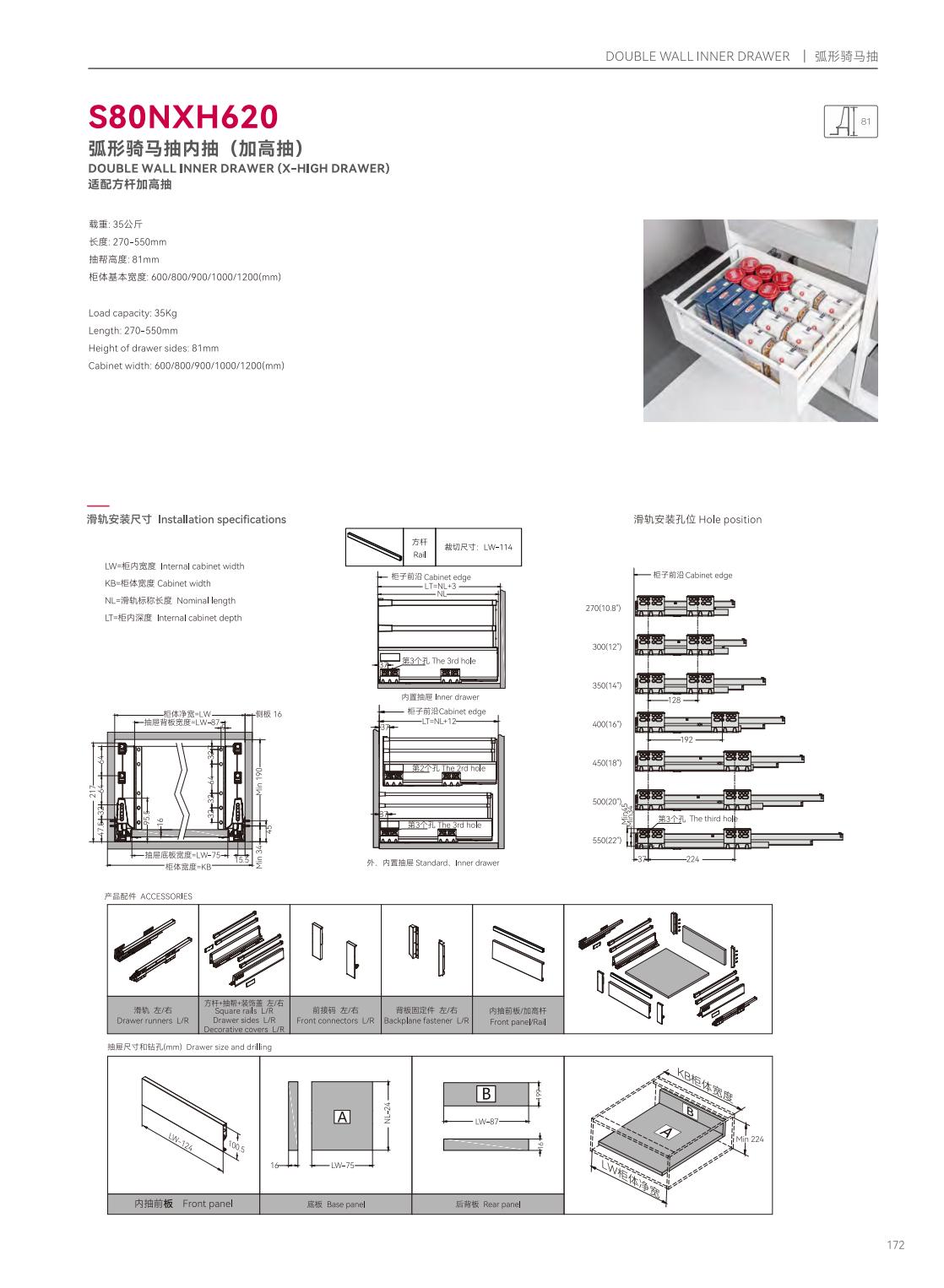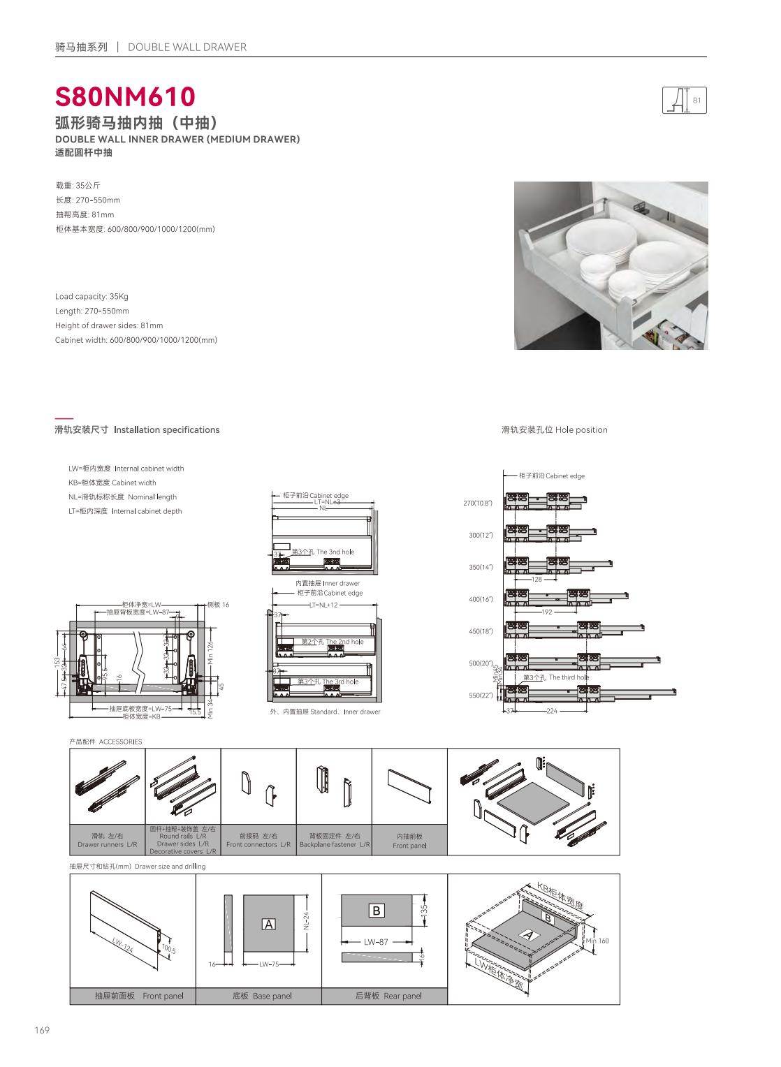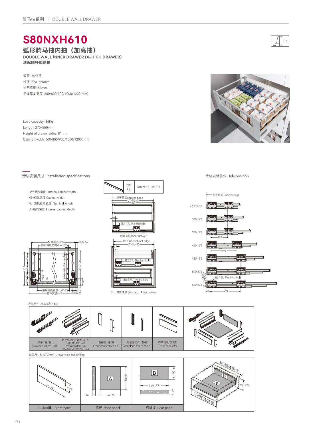 S39P601隱藏式三節(jié)反彈緩沖帶把手同步滑軌