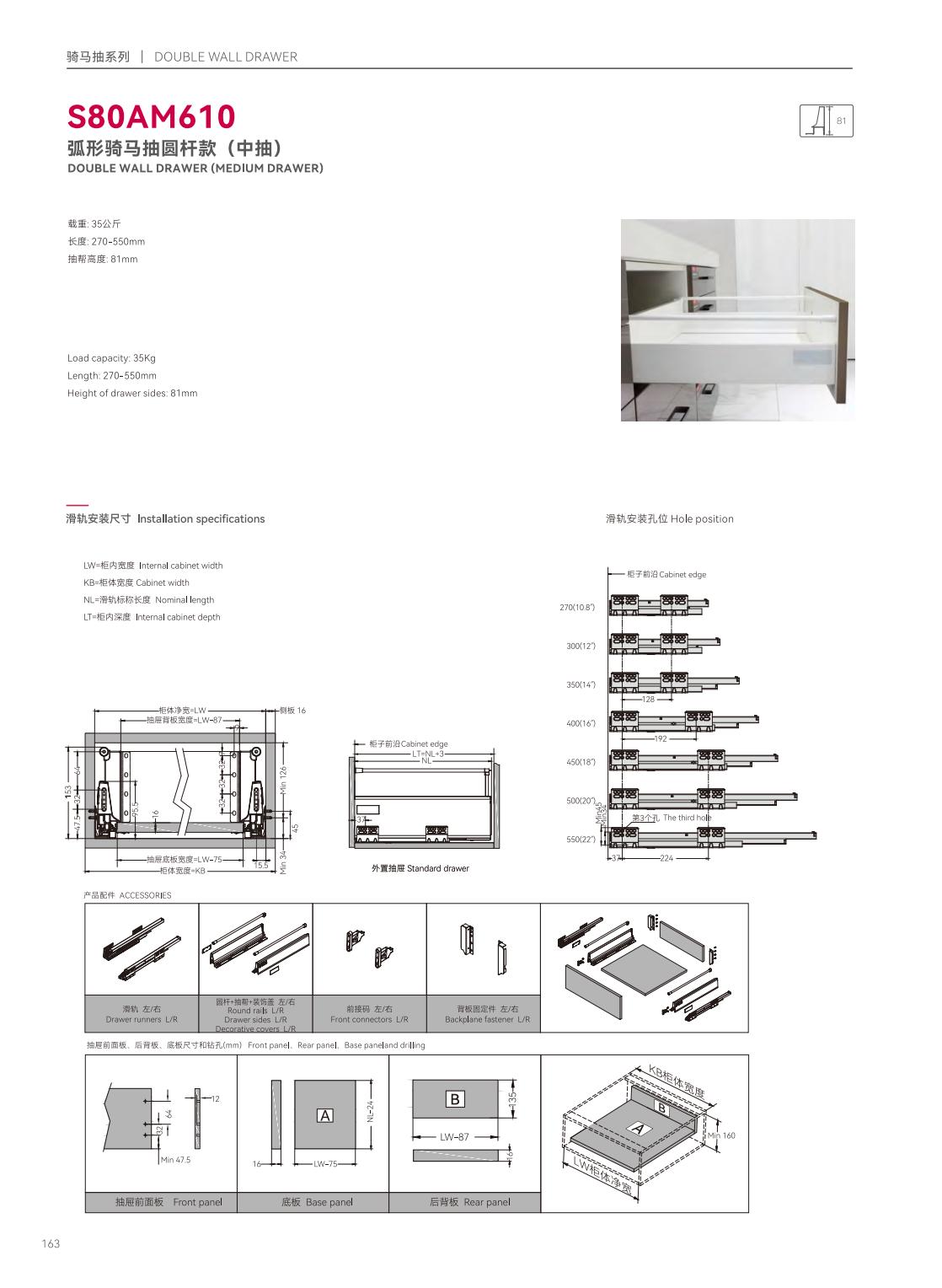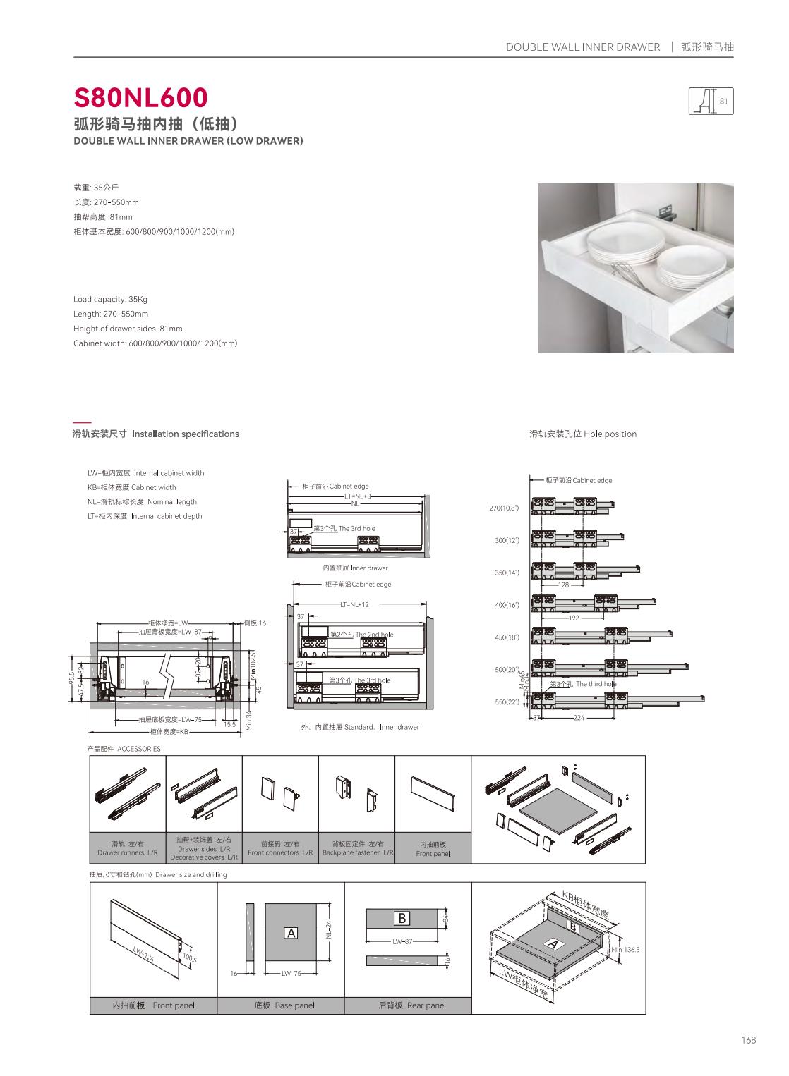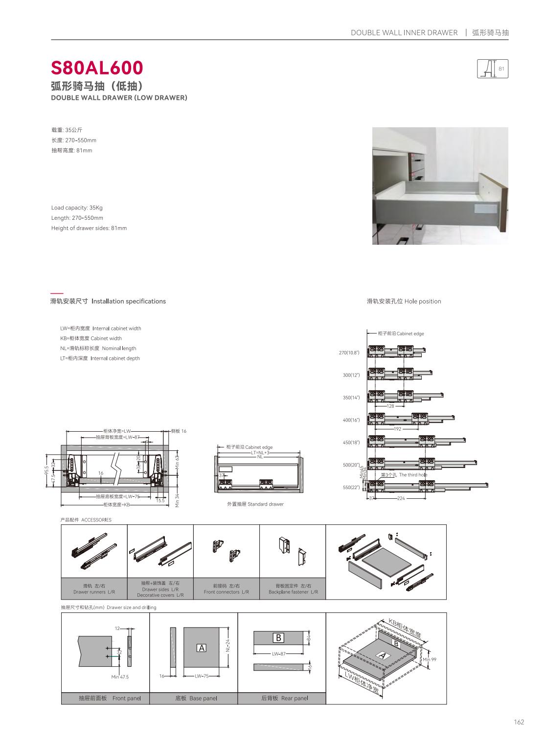 S39P601隱藏式三節(jié)反彈緩沖帶把手同步滑軌