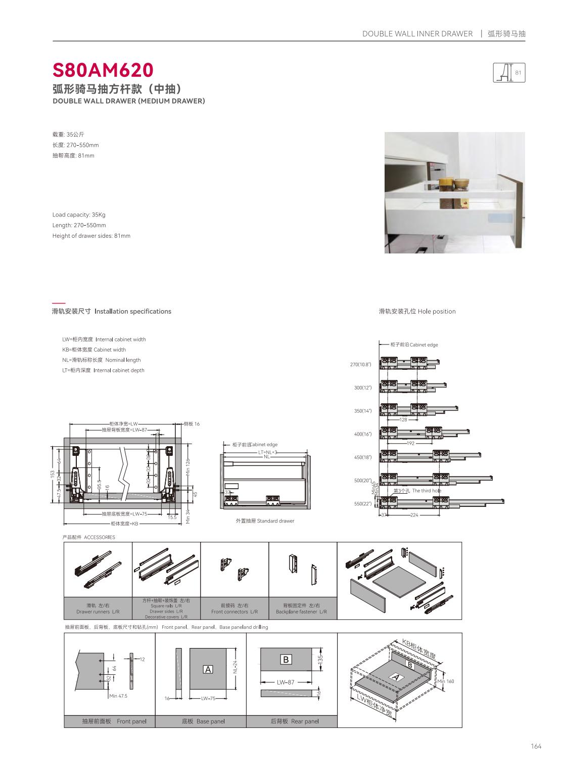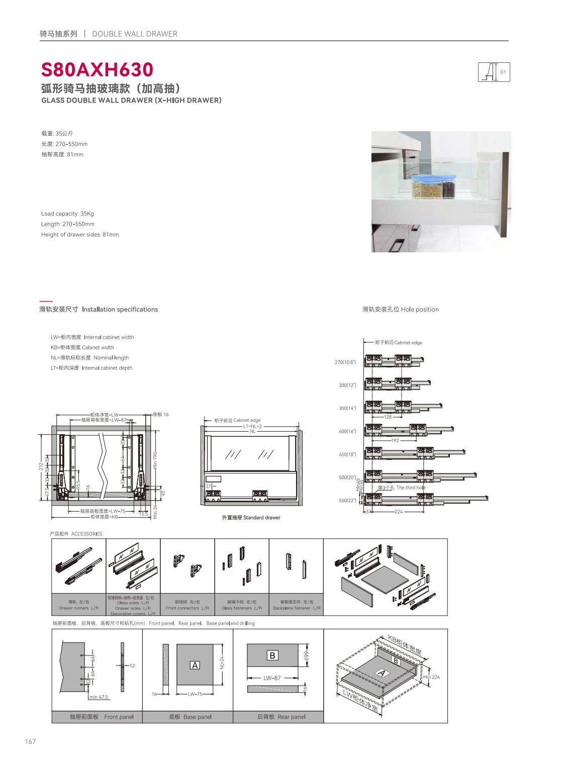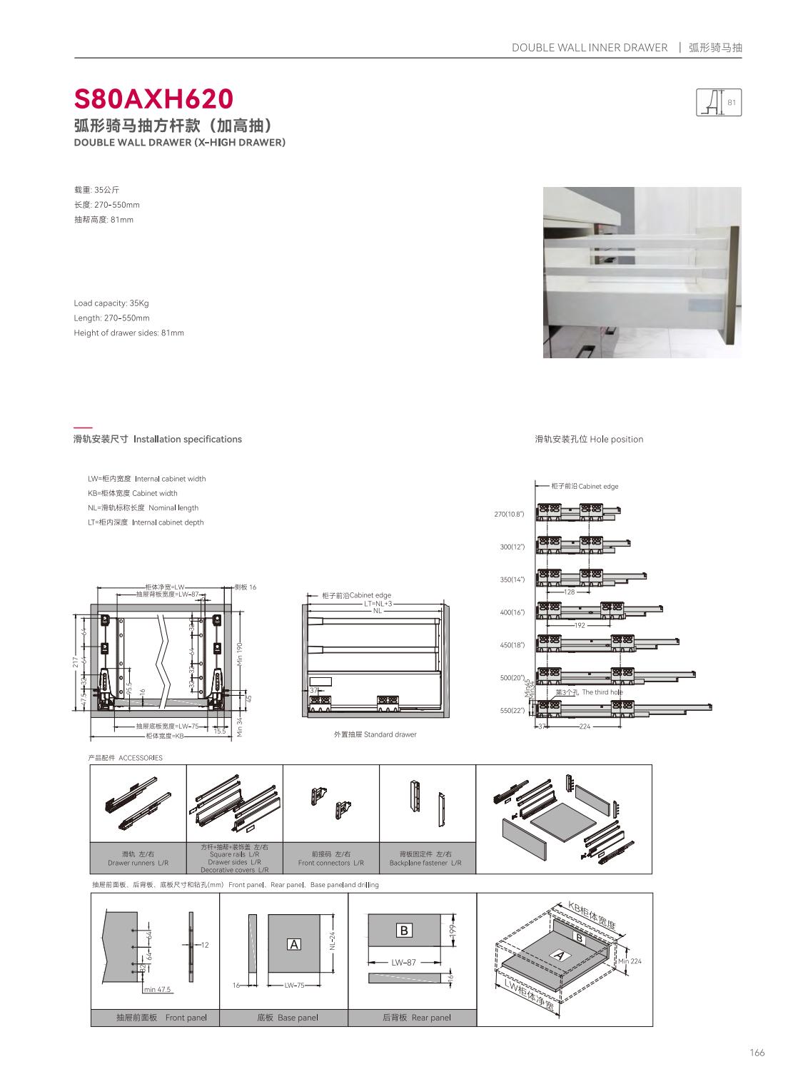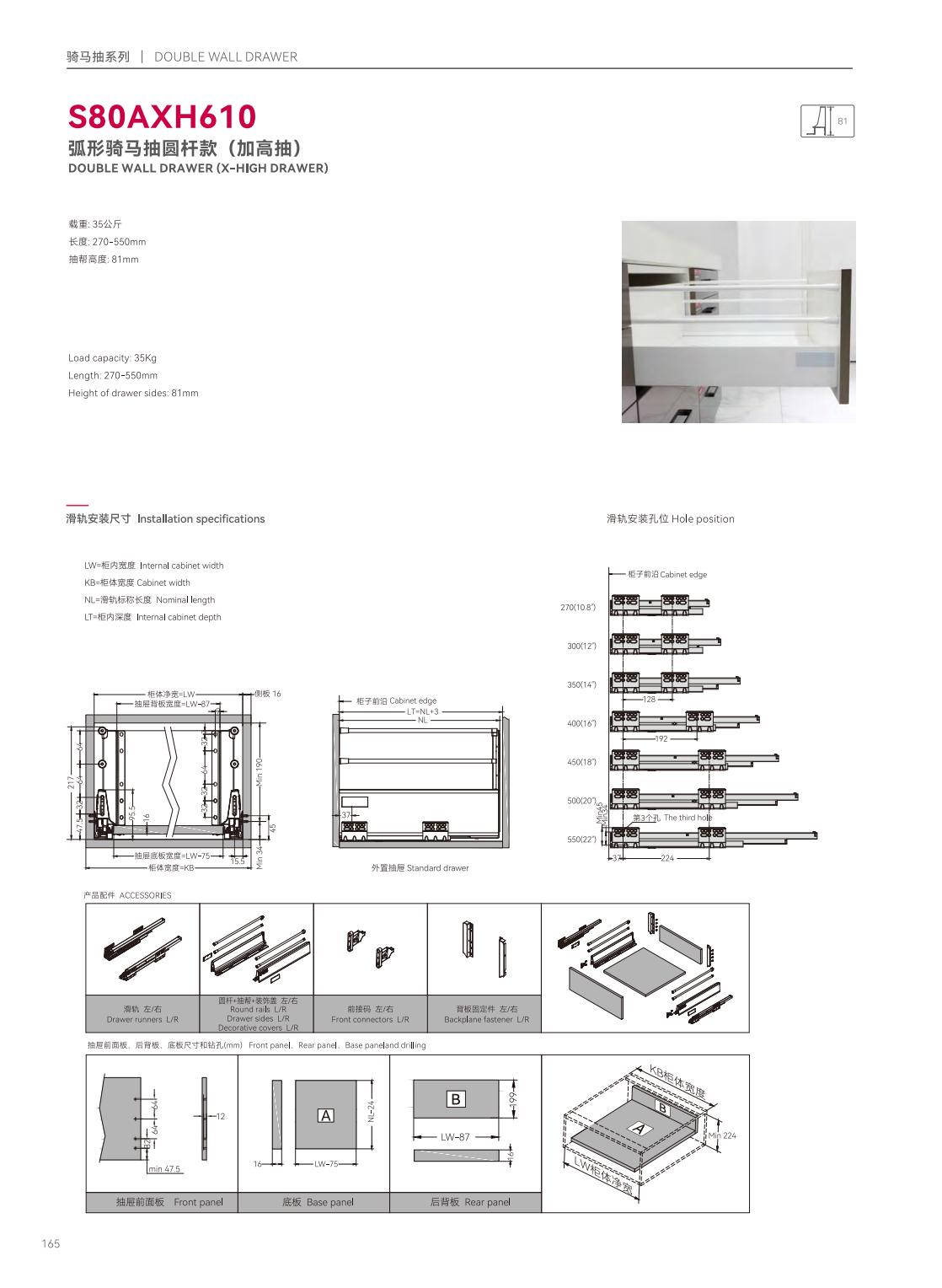 S39P601隱藏式三節(jié)反彈緩沖帶把手同步滑軌