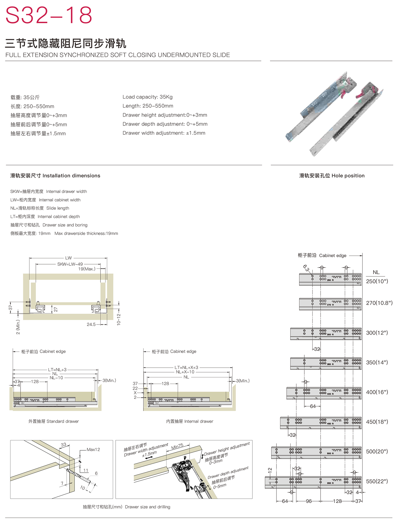 S32F803三節(jié)式隱藏同步反彈滑軌