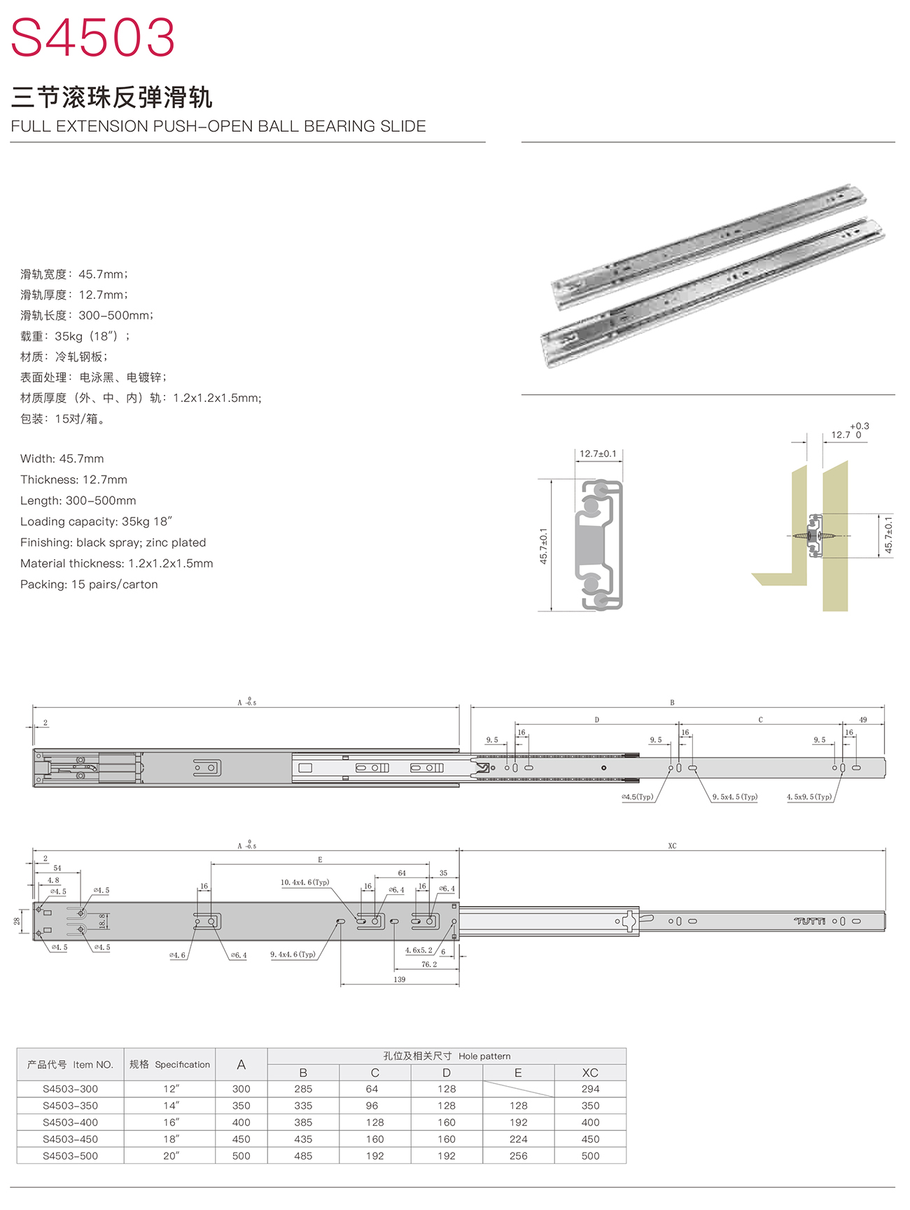 S39P601隱藏式三節(jié)反彈緩沖帶把手同步滑軌