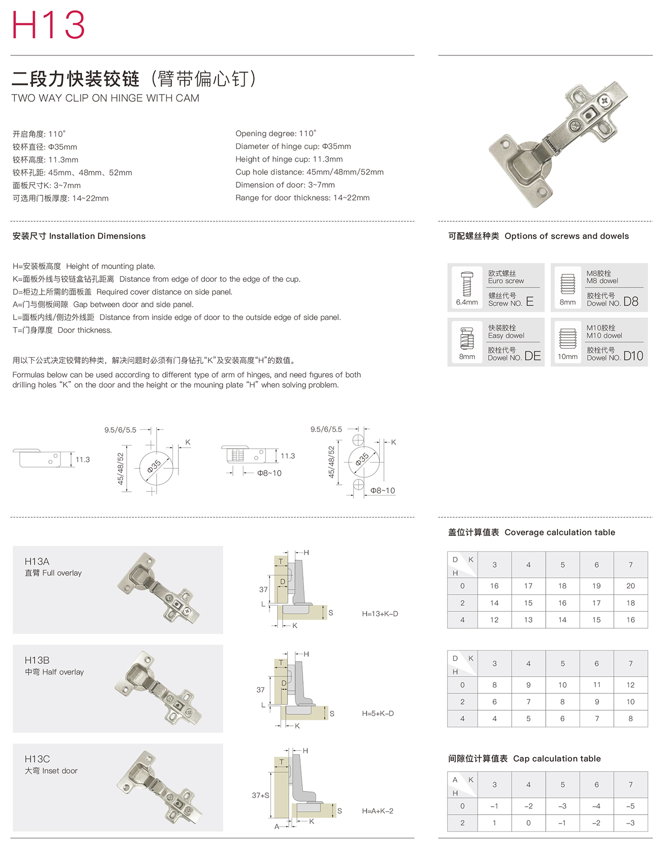 H13二段力快裝鉸鏈(臂帶偏心釘)
