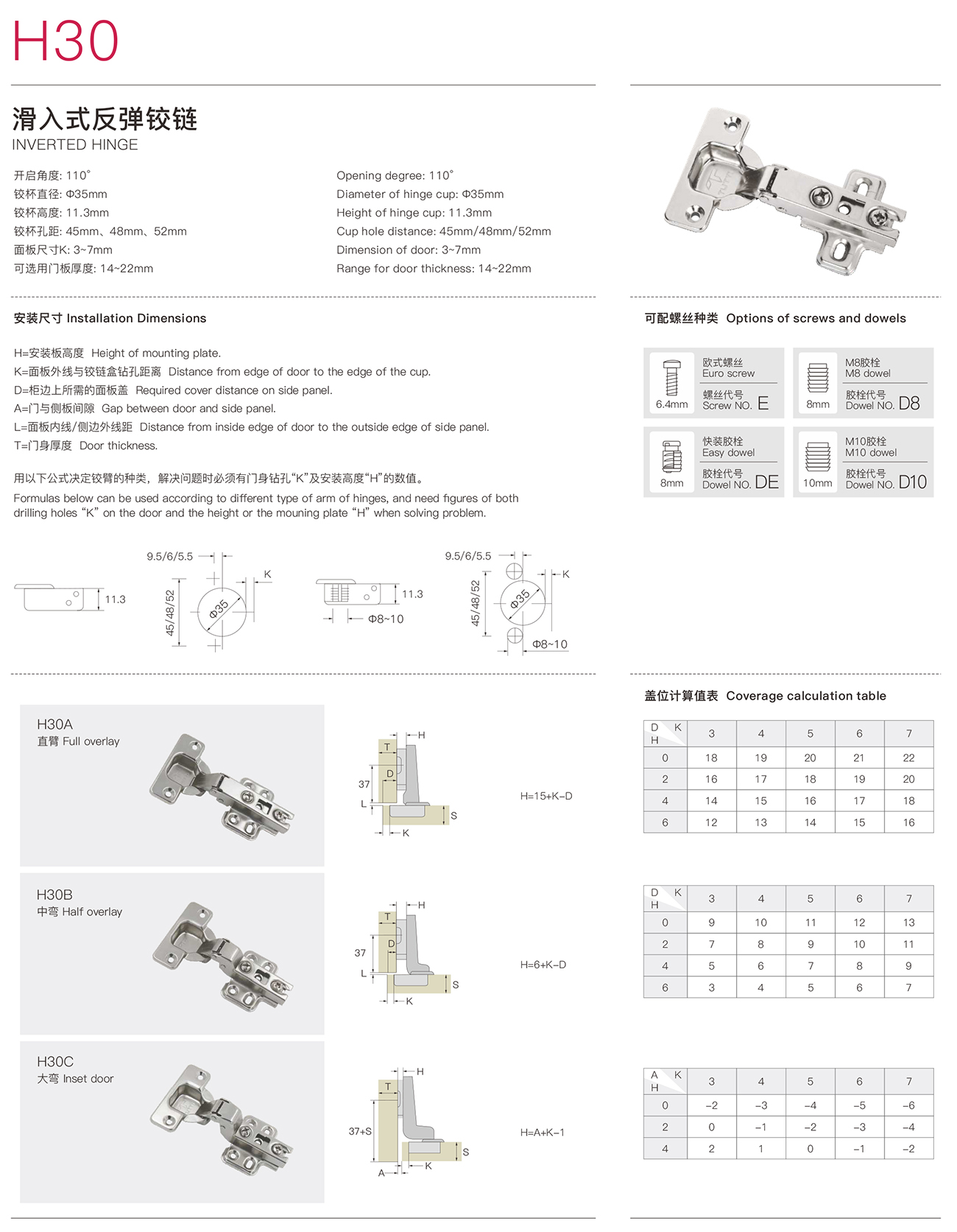 H30滑入式反彈鉸鏈