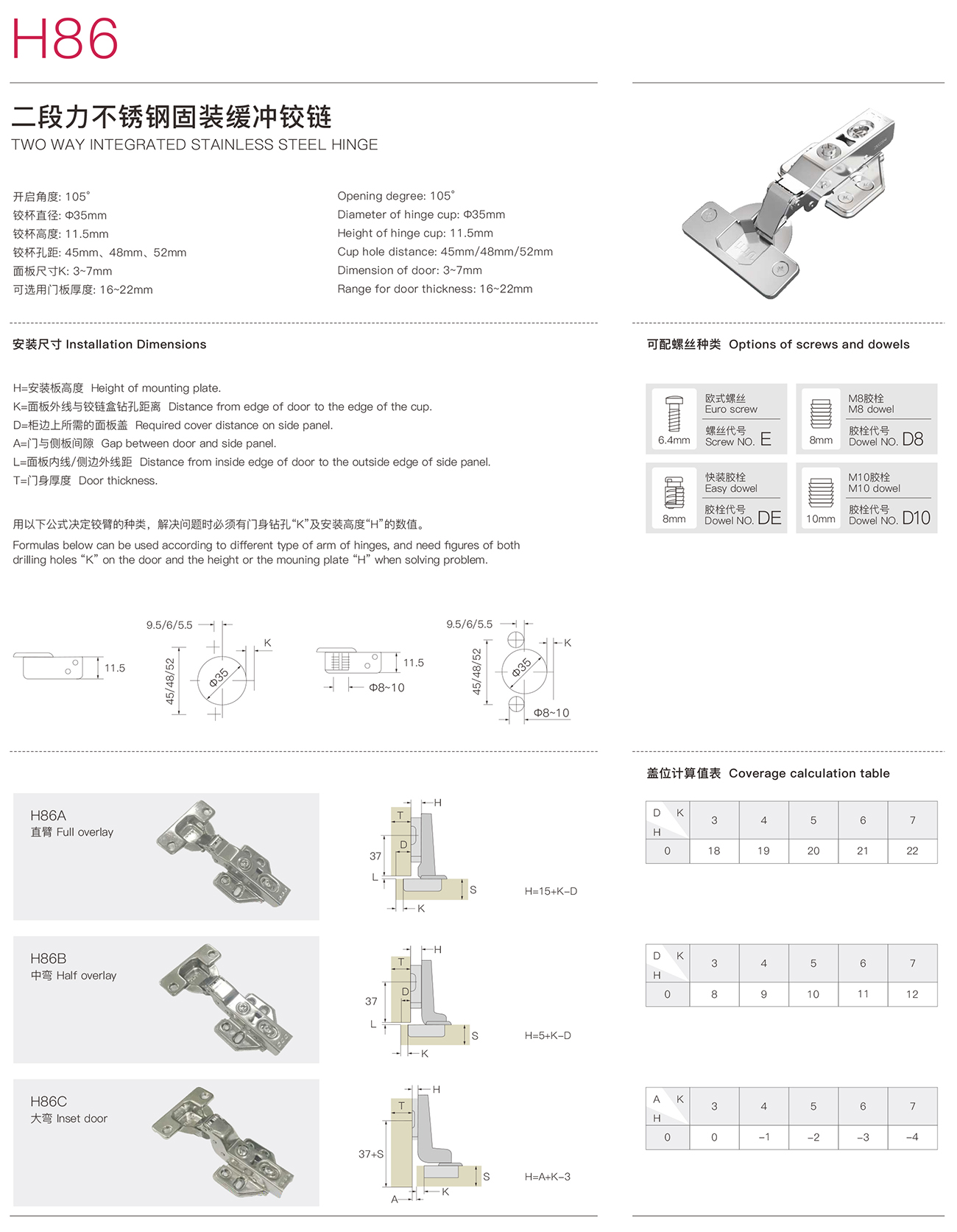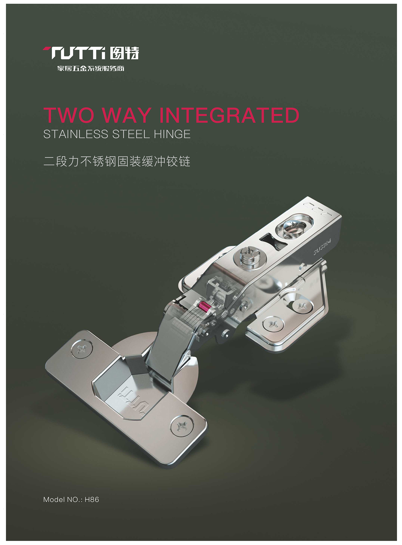 H86二段力不銹鋼固裝緩沖鉸鏈