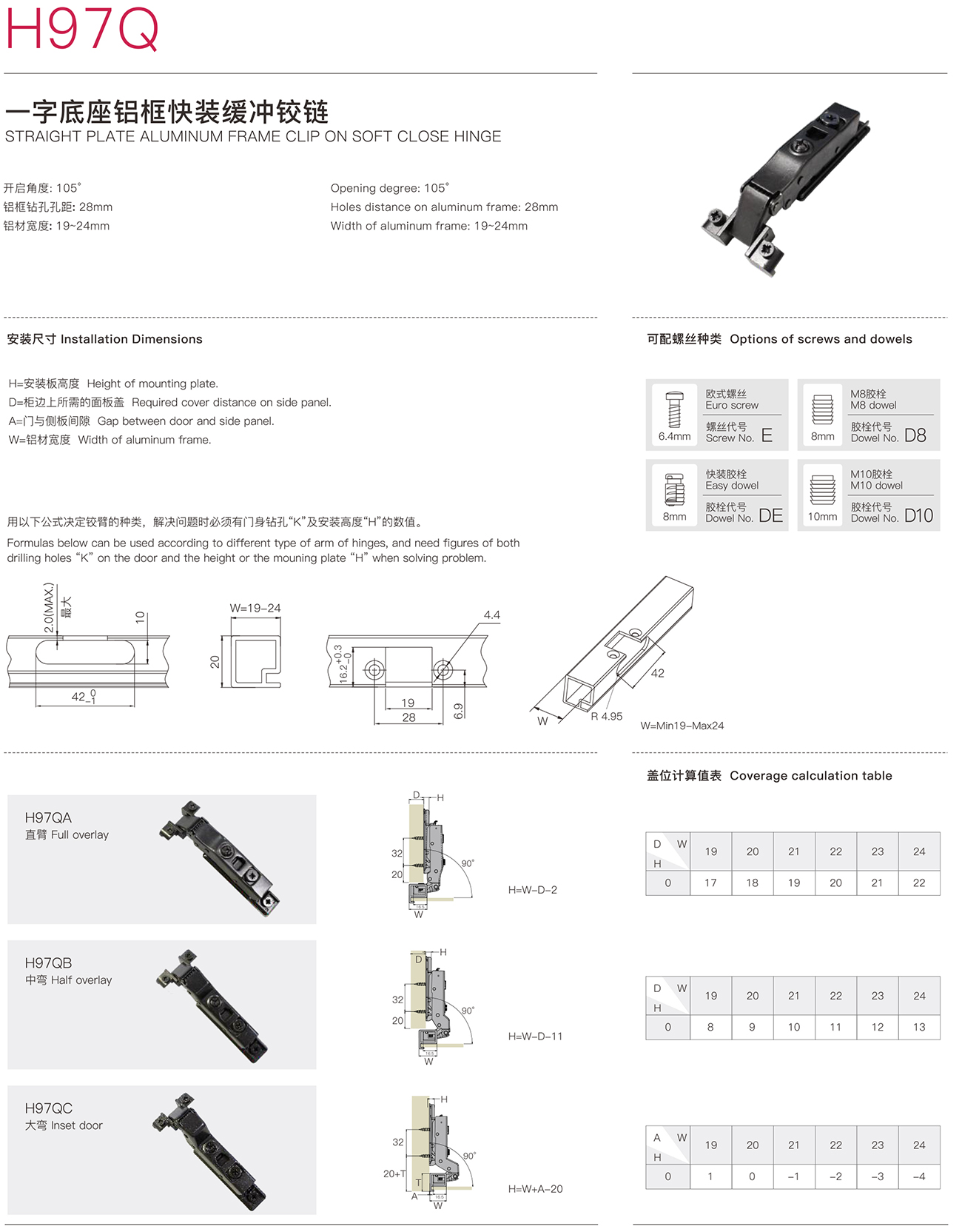 H97Q一字底座鋁框快裝緩沖鉸鏈