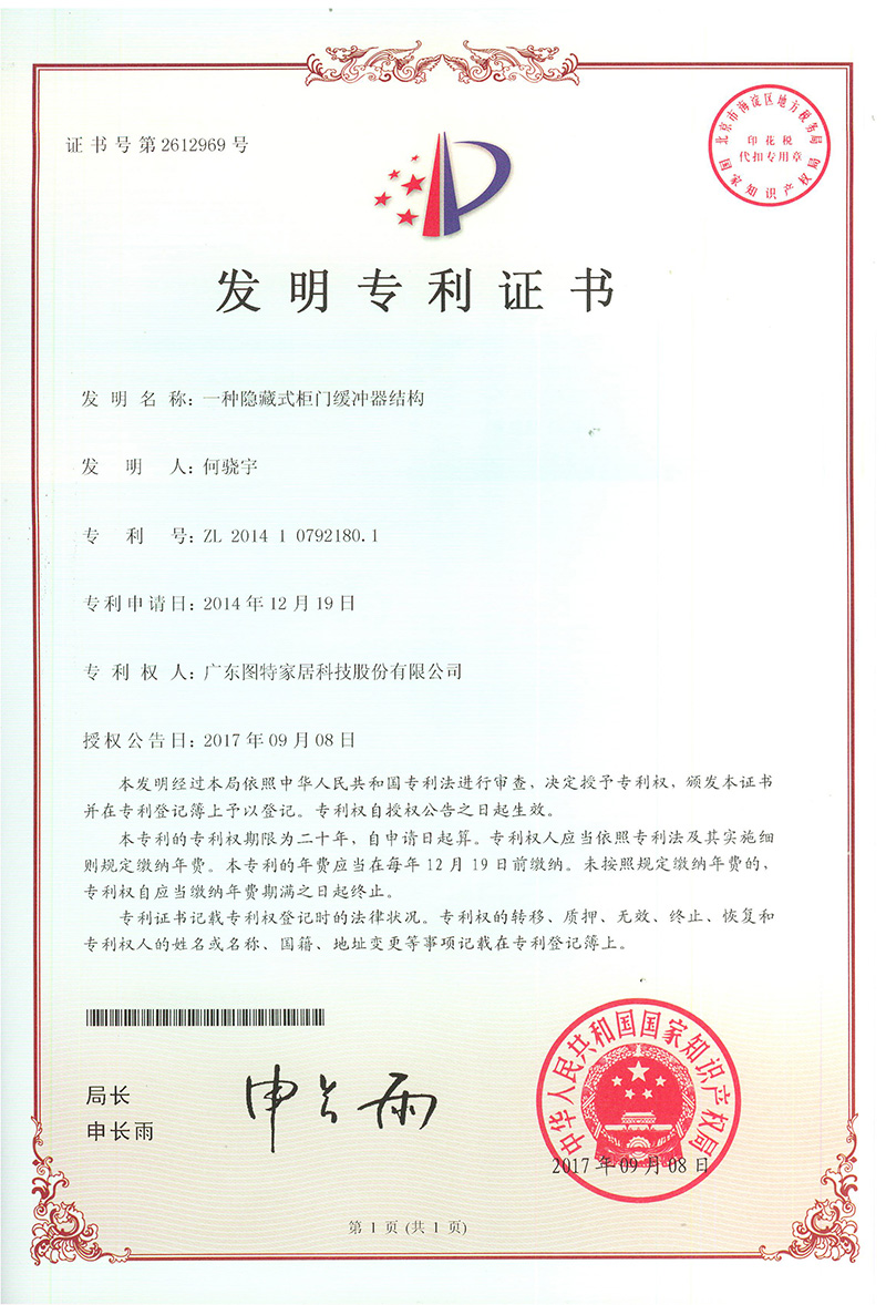 發(fā)明專利(一種隱藏式柜門緩沖器結(jié)構(gòu))