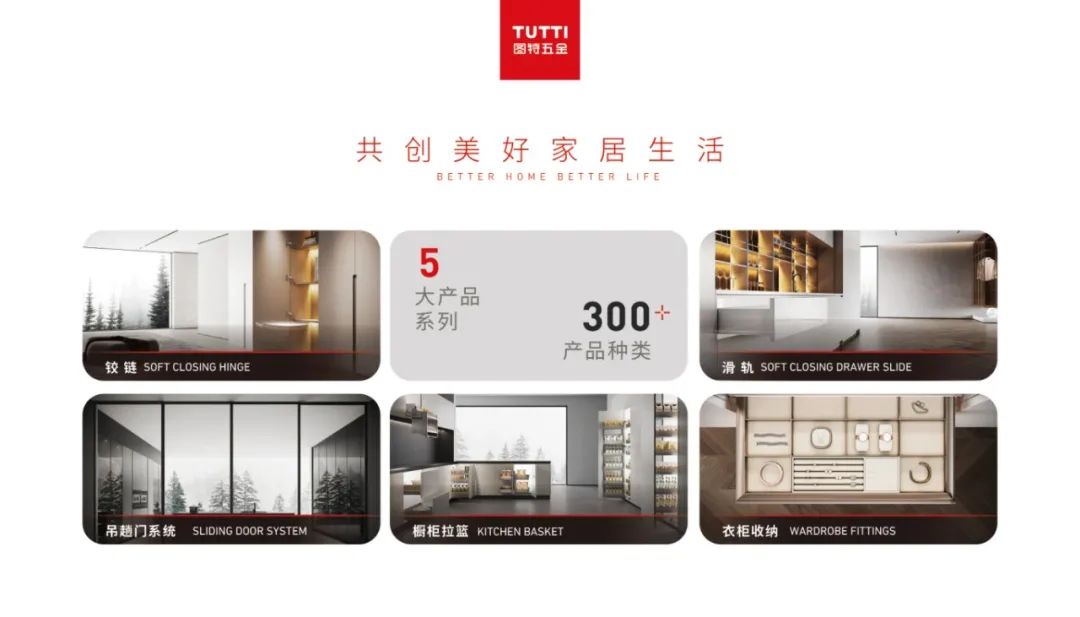圖特五金作為專業(yè)家居五金系統(tǒng)服務(wù)商,專注打造鉸鏈、滑軌、吊趟門、櫥柜拉籃、衣柜收納等全品類家居五金,覆蓋客廳、廚房、餐廚、衣帽間、衛(wèi)浴、書房、門廳等應(yīng)用場(chǎng)景,為一方樹等一眾整家定制品牌提供更全面、整體化的家居五金解決方案。