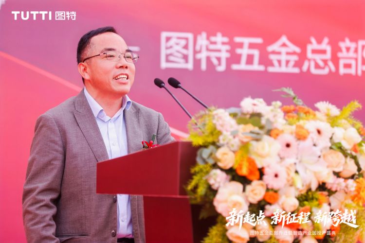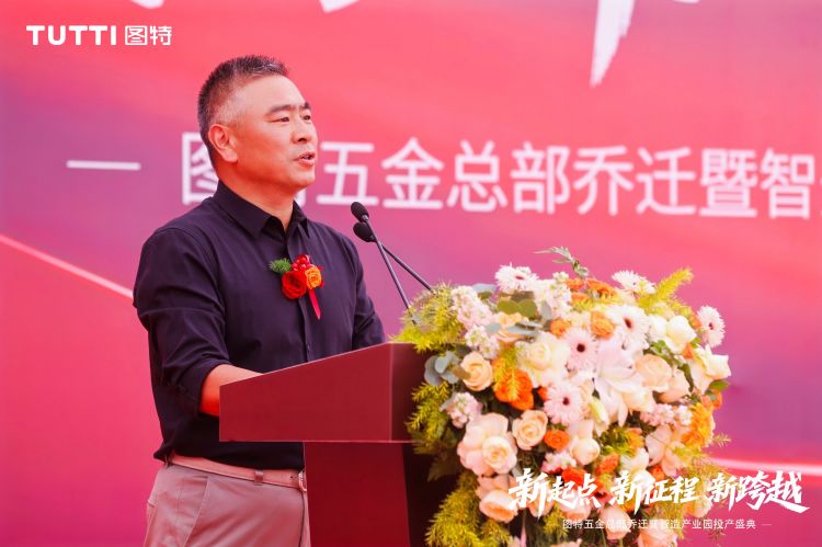 活動伊始,圖特五金董事長何驍宇發(fā)表了熱情洋溢的致辭。何董首先感謝各級政府領(lǐng)導(dǎo)一直以來對圖特五金新總部建設(shè)給予的大力支持!同時向全球合作伙伴與員工致謝,回顧往昔從不足百人小工坊到如今擁有2500名員工的智能產(chǎn)業(yè)園的落成,強調(diào)“創(chuàng)新與匠心”刻入企業(yè)基因的傳承之路。以“新起點、新征程、新跨越”為脈絡(luò),何董闡釋從“制造”到“智造”的進(jìn)化——0.1mm精工標(biāo)準(zhǔn)、1.6萬㎡智能倉儲的高效運轉(zhuǎn),見證從單品類到六大五金系統(tǒng)服務(wù)商的躍遷。