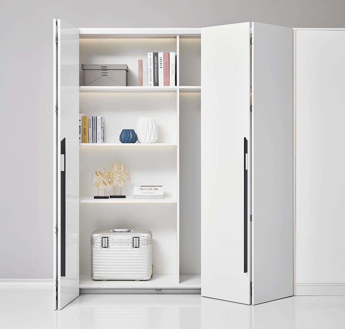 圖特趟門包含外掛式/內(nèi)推式柜體趟門、隔斷門,以及其它輔助性趟門五金,除了能收納物品,更能收納全屋空間,被應(yīng)用到玄關(guān)、客廳、廚房、臥室、書房、衣帽間、衛(wèi)浴、餐廳、陽臺(tái)等9大應(yīng)用空間,在全屋家居中上演一場(chǎng)“顯”與“隱”的收納盛宴。